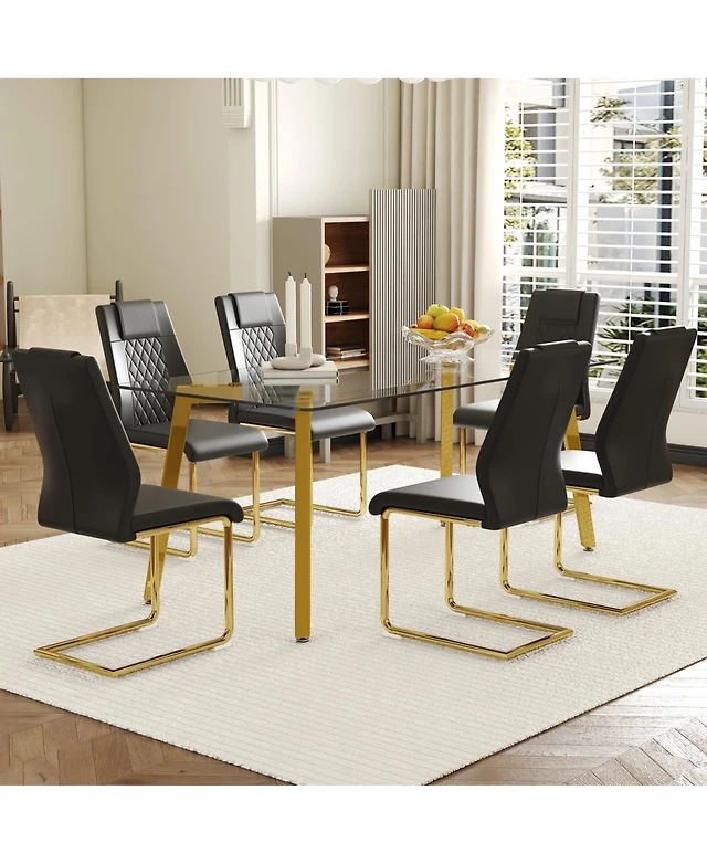 Streamdale Golden Leg Glass Table & 6 Black Pu Chairs