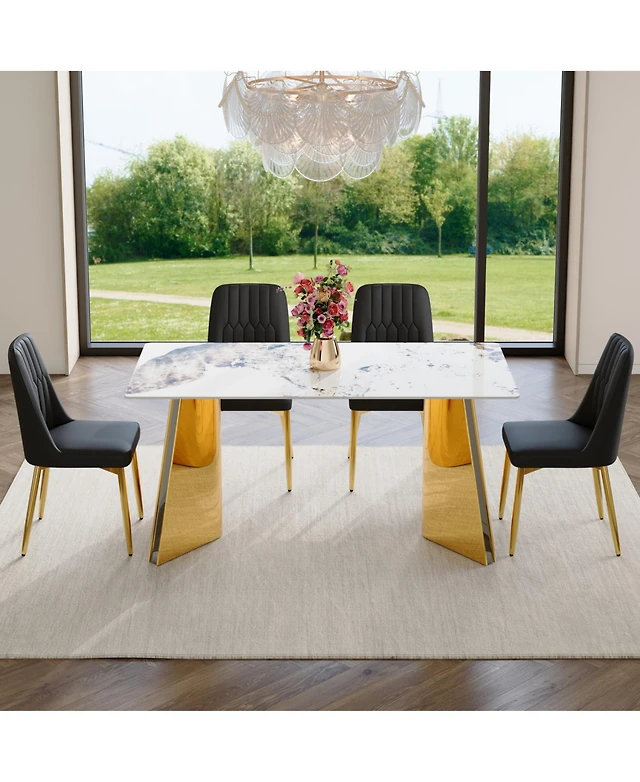 Streamdale Luxurious 63" Pandora Dining Set Sintered Stone Table, 4 Pu Chairs
