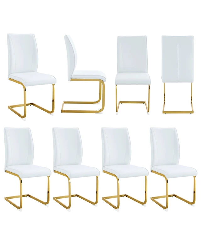 Streamdale Luxury White Pu Dining Chair Set - Gold Legs (8 Chairs)