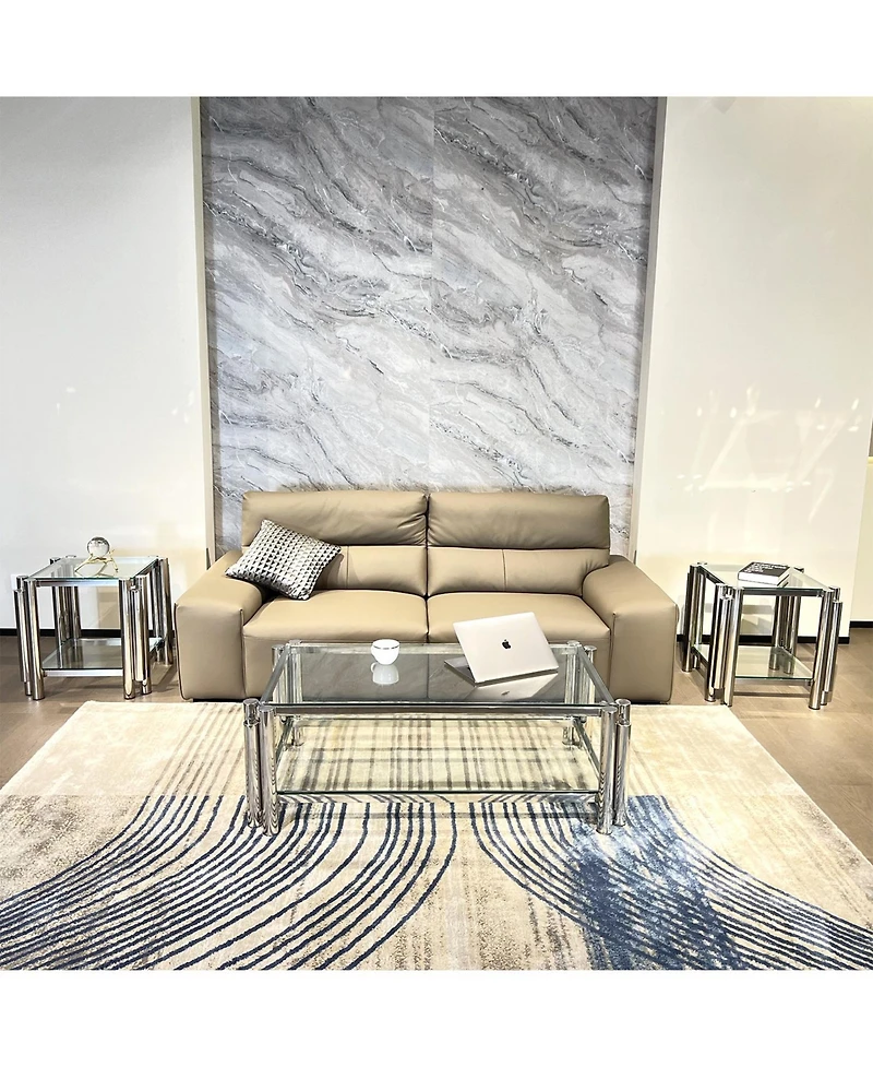 Upgrade your living space with this captivating coffee table set. Its unique industrial design, glass top, and irregular stainless steel tube frame add a touch of chic. The two-tier glass shelves provide ample storage for essentials, while the sturdy structure ensures durability. Enjoy its ease of cleaning and simple assembly—the perfect addition to any home.