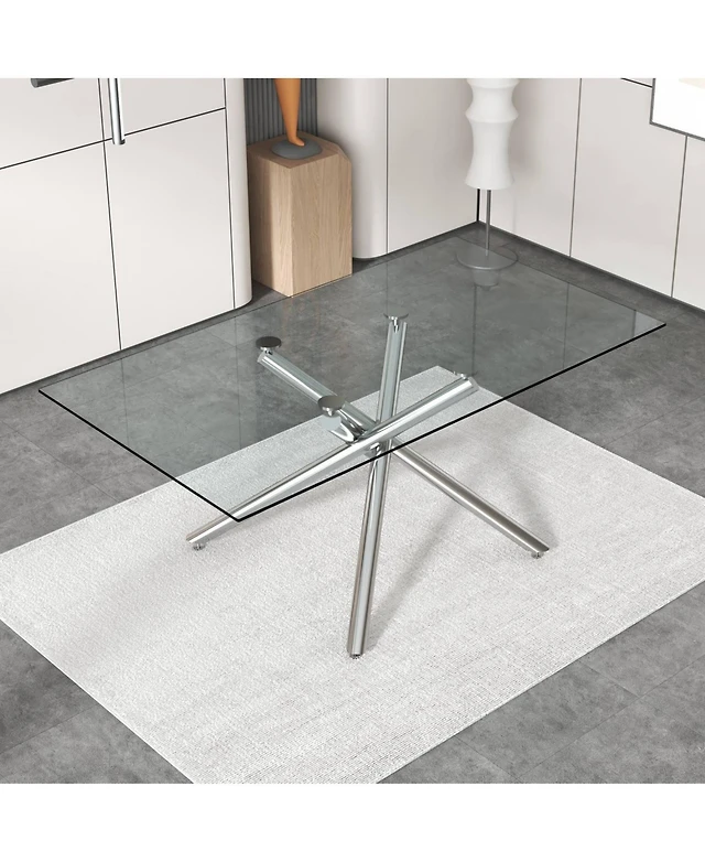 Streamdale Furniture Glass Dining Table with Silver Metal Legs