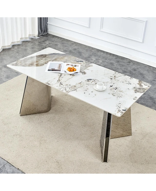 Streamdale Furniture Modern Faux Marble Dining Table with Wood Legs