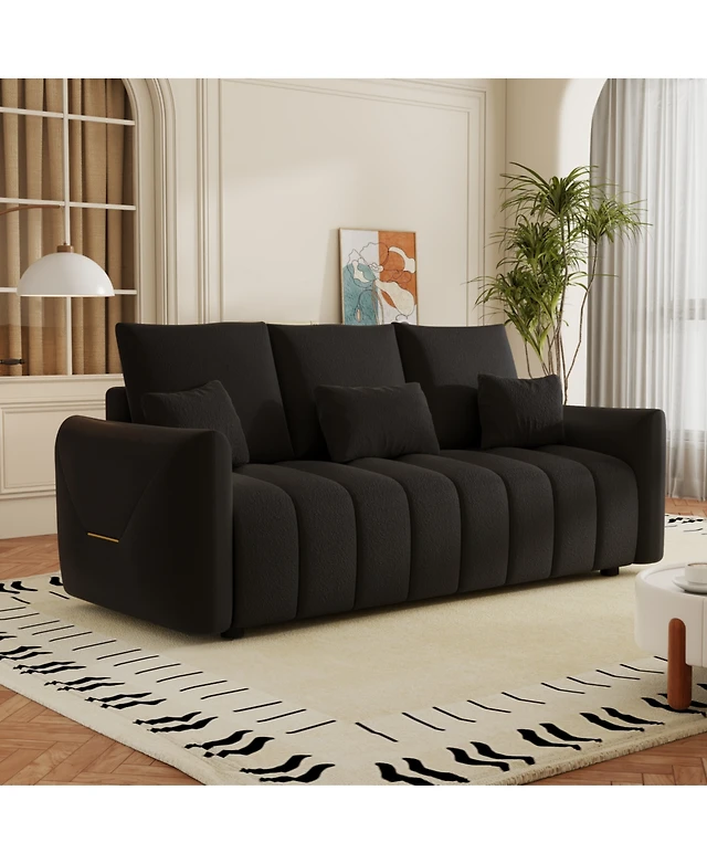 Streamdale Furniture 78" Teddy Fabric Sofa with Pillows & Solid Wood Frame