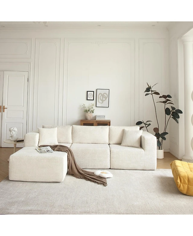 Streamdale Furniture Corduroy 6-Seater Modular Sectional Sofa (Beige)