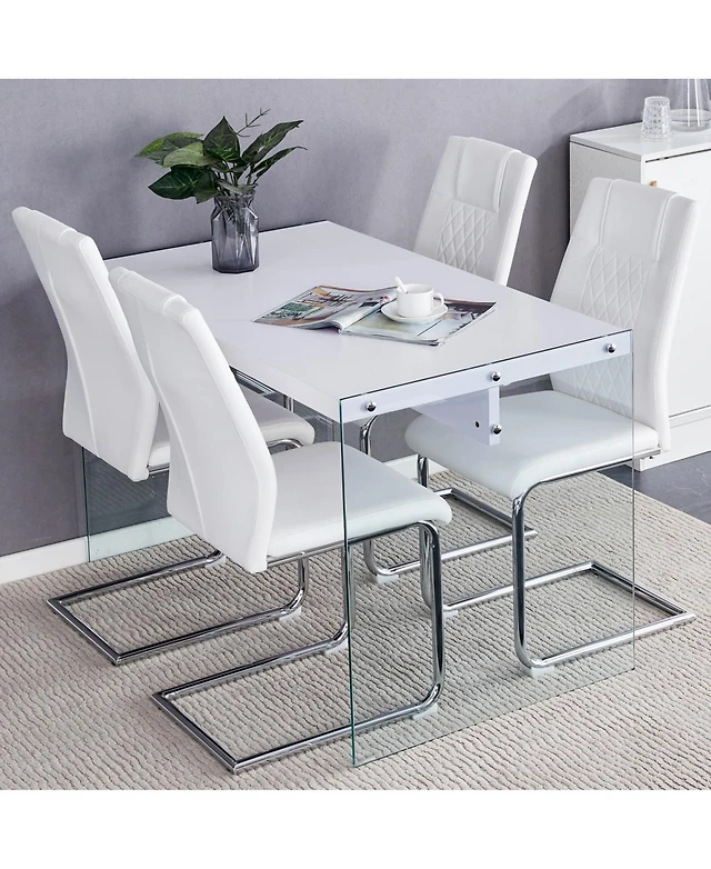 Streamdale Furniture Streamdale White Pu Dining Chair Set (Set of 4