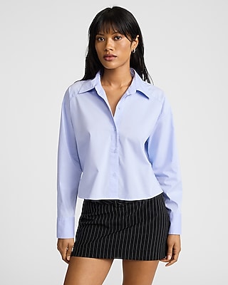 This poplin cropped button up shirt in a boyfriend fit is a basic that everyone needs in their closet. Pair with your best denim and heels for an elevated casual look.