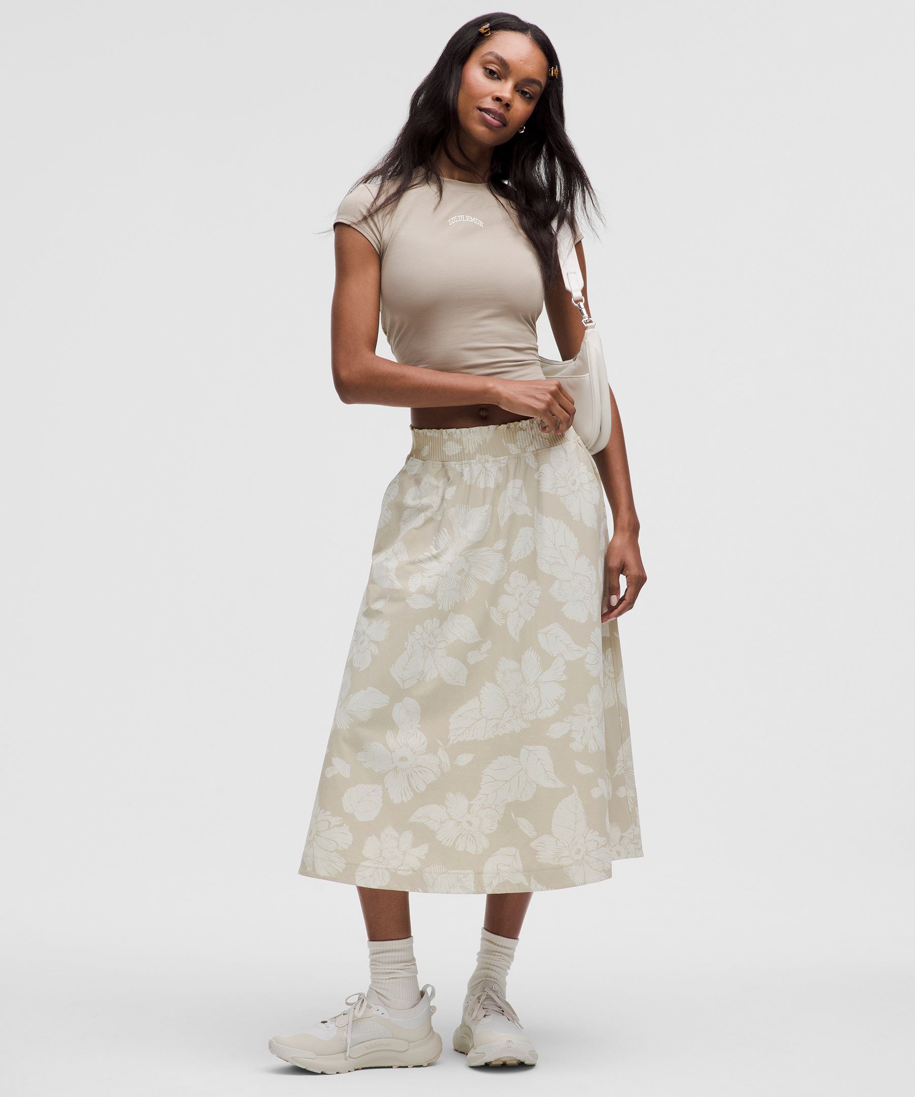 So, where to? Designed in travel-friendly stretch woven fabric, this A-line skirt has a flowy silhouette that goes with practically all of the tops you packed.