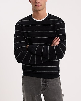Striped Waffle Knit Cotton Crew Neck Sweater