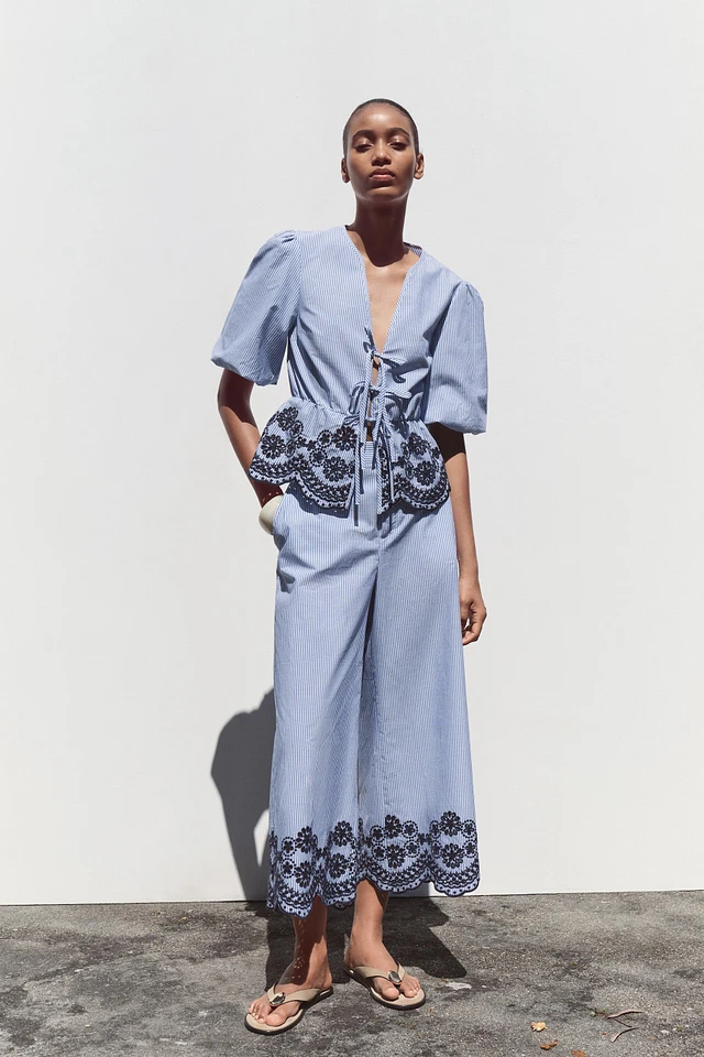 STRIPED CULOTTES WITH EMBROIDERY