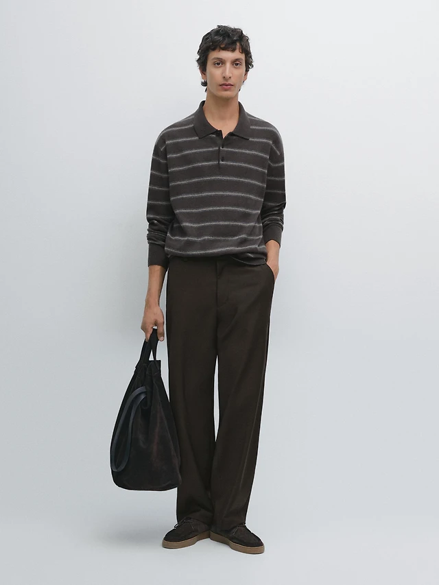 EMBROIDERED STRIPED KNIT POLO SWEATER
