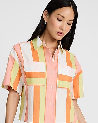 Striped Linen-Blend Cropped Shirt in Bloomington, MN
