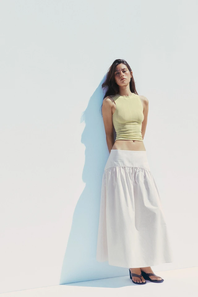 LIMITED EDITION STRIPED COTTON LINEN MIDI SKIRT