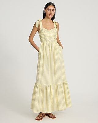 Striped Pleated Sweetheart Tie Shoulder Tiered Maxi Dress in Bloomington, MN