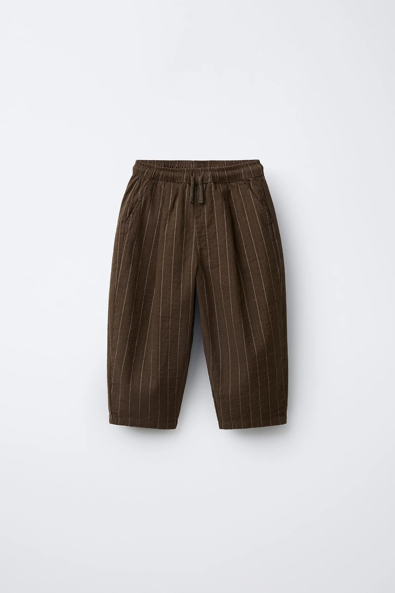 STRIPED TEXTURED BAGGY PANTS