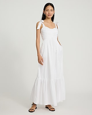 Pleated Sweetheart Tie Shoulder Tiered Maxi Dress
