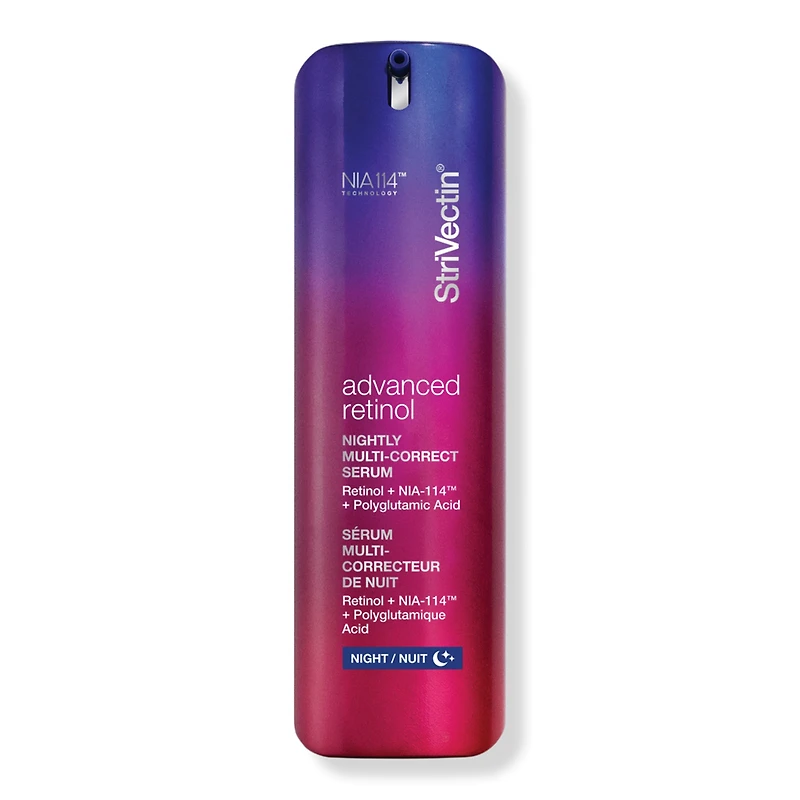 ADV RTNL NIGHTLY MLT CRCT SRM 1.0OZ. Benefits: Ultra-concentrated. Visibly reduces deep lines and wrinkles. Restores firmness and elasticity. Refines the look of skin texture and pores. Promotes radiant, even-toned skin. Research Results: Starting in just 7 days, visible improvement in*: Lines & Wrinkles Texture & Smoothness Pores Radiance Firmness Overall appearance of skin. Results with continued use: 100% showed visible improvement in lines** 96% showed improvement in overall skin appearance** 93% showed improvement in skin texture & radiance**. Additional Claims: Clinically Proven Results: No irritation & no dryness*** Reduces the appearance of wrinkle size after 7 days**** 93% showed improvement in firmness**. *Based on Expert Grading Evaluation at 7 days when used as directed **Based on Expert Grading Evaluation at 12 weeks when used as directed ***Based on tolerance assessment on 31 subjects after 12 weeks of product use ****Based on results from image analysis of wrinkles. Features: Skin barrier-strengthening NIA-114 (our patented form of Niacin clinically shown to enhance the efficacy of Retinol)minimizes sensitivitywhilemoisture-binding Polyglutamic Acid helps counteractRetinol's drying side effects. Calibrated for comfortable delivery of Retinol, this silky, lightweight serum layers easily into any routine.