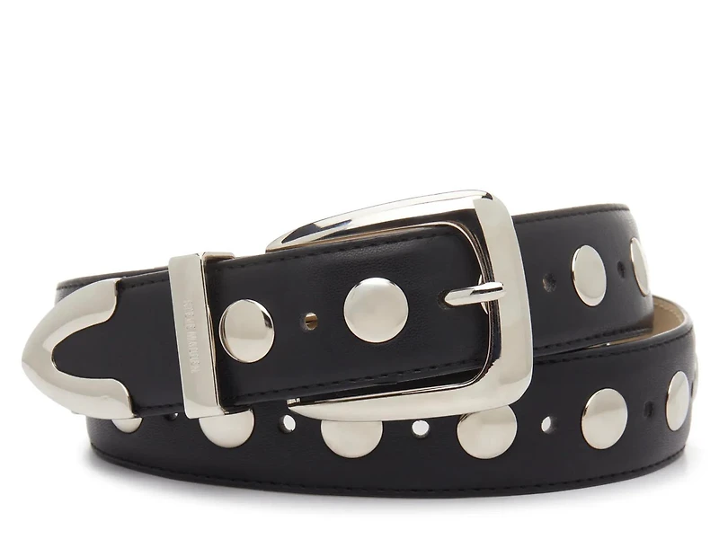 Add some shine to your look with this studded pant belt from Steve Madden. Coin-like metal studs catch the eye, while the classic silhouette ensures easy styling.