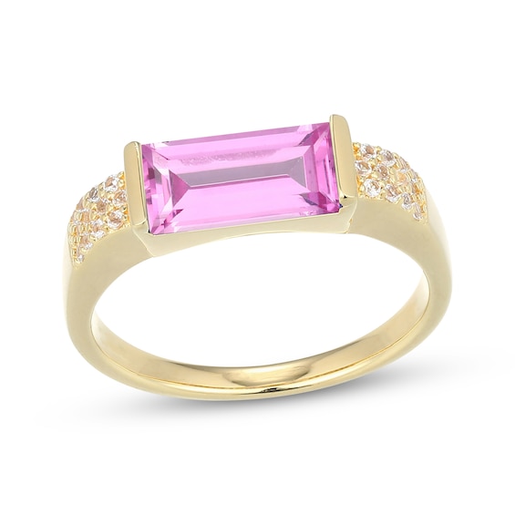 Mix things up with this fun multi-shape lab-created emerald bracelet. Sterling silver with 24k yellow gold vermeil baguette-cut, pear-shaped and round-cut lab-created emeralds alternate along the center 7. 25-inch cable chain; lobster clasp from the studio by kay collection