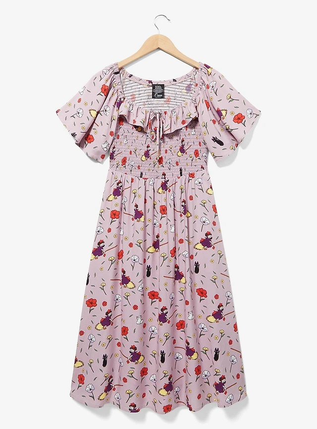 Studio Ghibli Kiki's Delivery Service Floral Kiki Allover Print Smocked Midi Dress — BoxLunch Exclusive