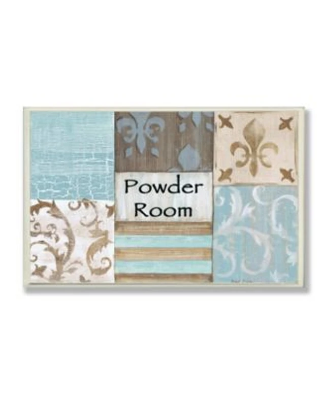 Stupell Industries Home Decor Collection Fleur de Lis Powder Room Blue, Brown and Beige Bathroom Wall Plaque Art, 12.5" x 18.5"