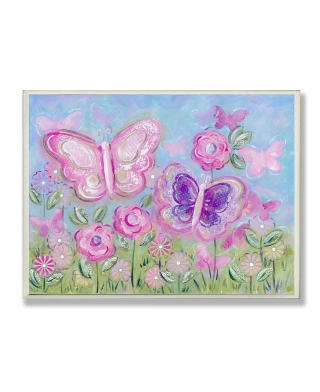Stupell Industries The Kids Room Pastel Butterflies in a Garden Wall Plaque Art, 12.5" x 18.5"