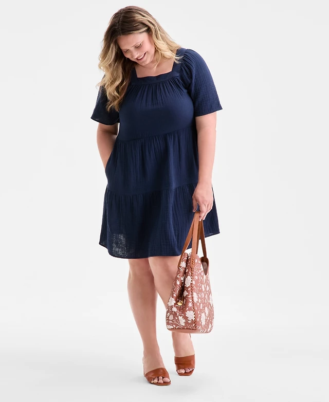 Style & Co Plus Size Square-Neck Tiered Dress, Exclusively at Macy's