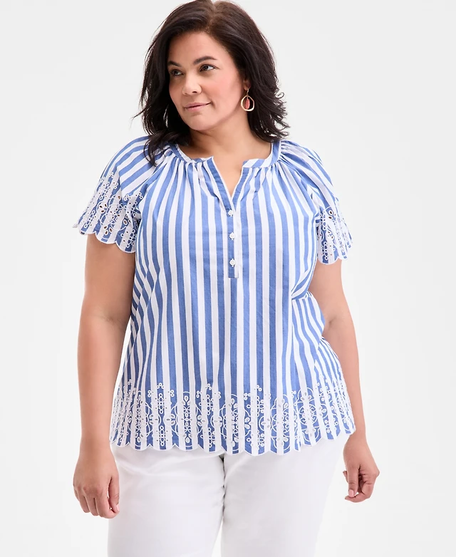 Style & Co Plus Striped Flutter-Sleeve Top, Exclusively at Macy's