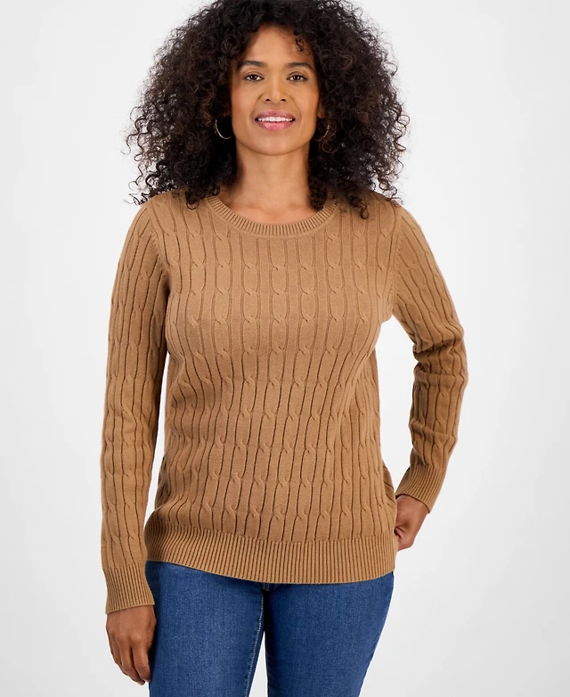 Style & Co Women's Cotton Cable-Knit Crewneck Sweater, Created for Macy's