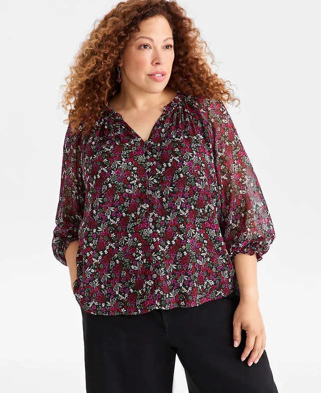 Style & Co Plus Printed 3/4-Sleeve Blouse, Macy's Exclusive