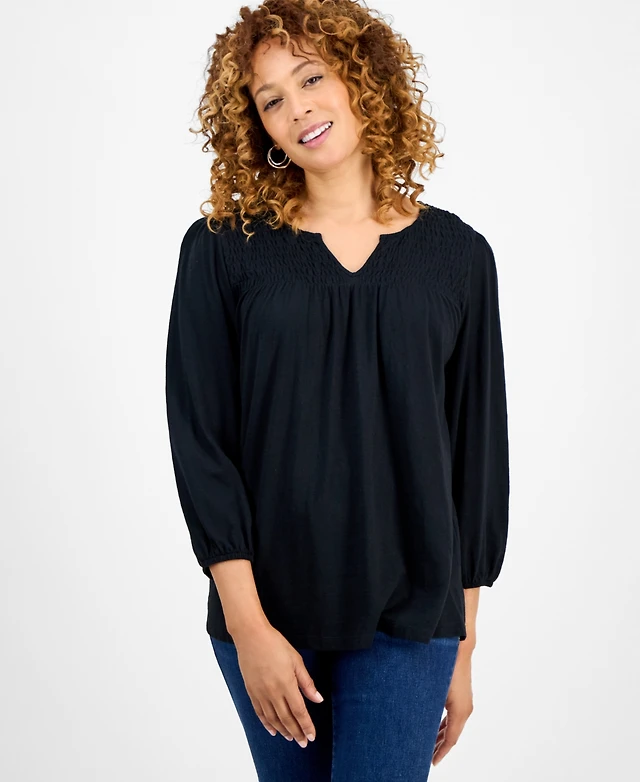 Style & Co Women's Smocked Knit 3/4-Sleeve Top, Exclusively at Macy's