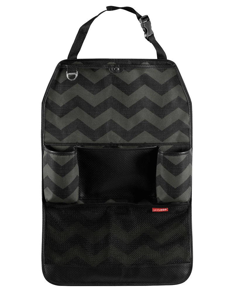 Perfectly sized to securely fit behind most front seats, this car organizer is as smart as it looks. The chic chevron print and fashionable faux leather coordinate with any car interior.