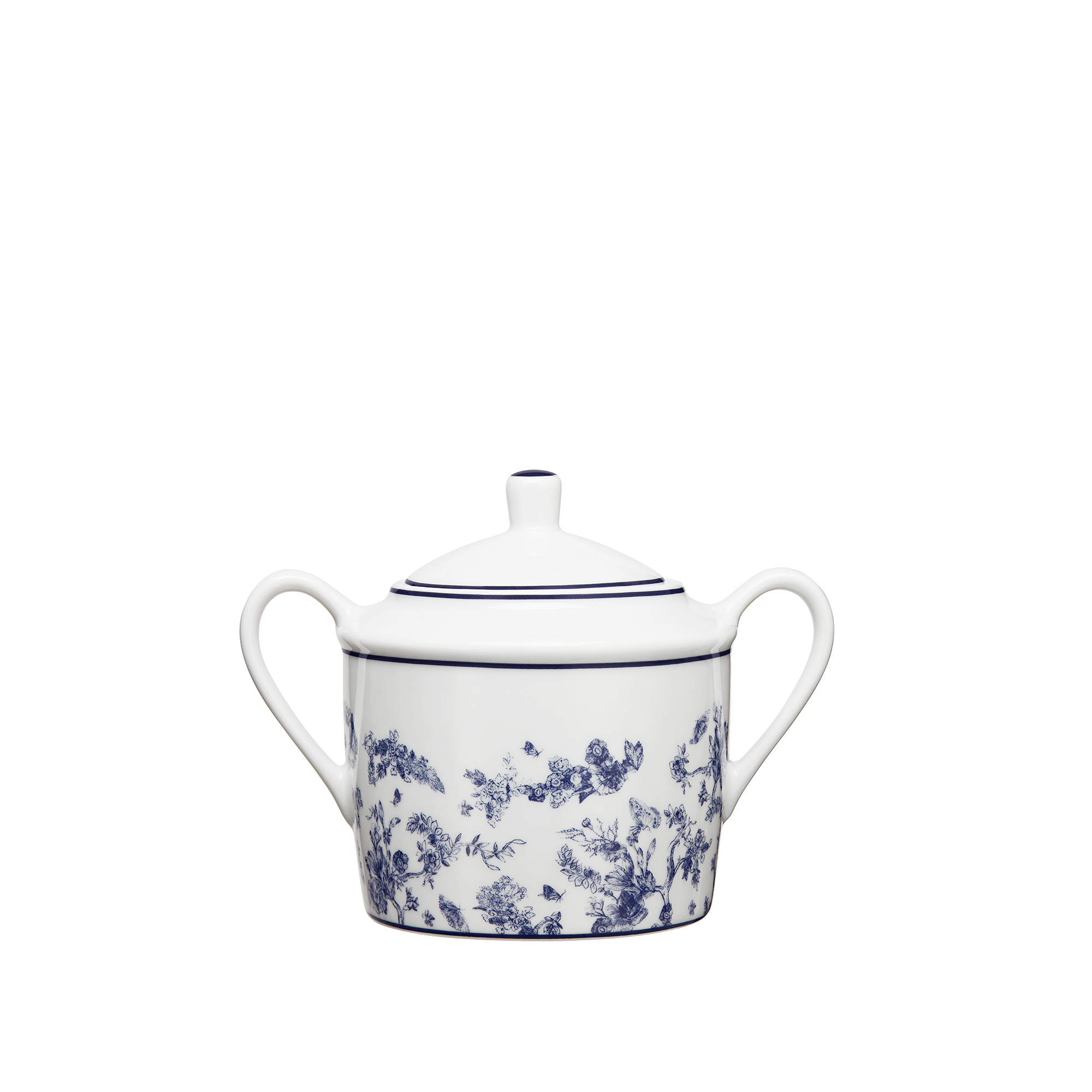 Sugar bowl crafted in extra fine Limoges porcelain with a hand-painted Toile de Jouy filet border. A timeless motif and House code cherished by Christian Dior, the Toile de Jouy is constantly reimagined and still adorns Dior Maison's creations as a tribute to the founding couturier.