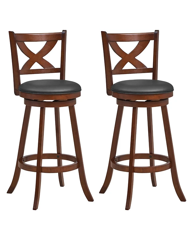 Sugift 2 Pieces Classic Counter Height Swivel Bar Stool Set with X-shaped Open Back