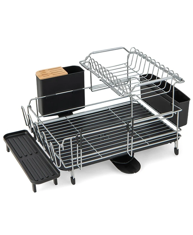 Simplehuman Steel Frame Kitchen Dish Drying Rack with Swivel Spout Drain