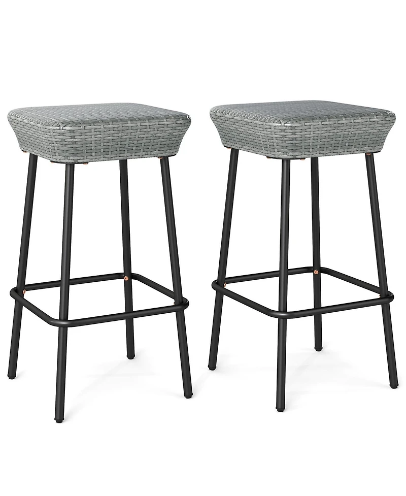 Elevate your outdoor space with stylish bar stools featuring a premium mix gray Pe rattan seat that's sunproof and breathable. The robust metal frame supports up to 400 lbs, while the backless design offers versatile seating. Perfect for various settings, these stools blend functionality and elegance, ensuring comfort and durability outdoors.