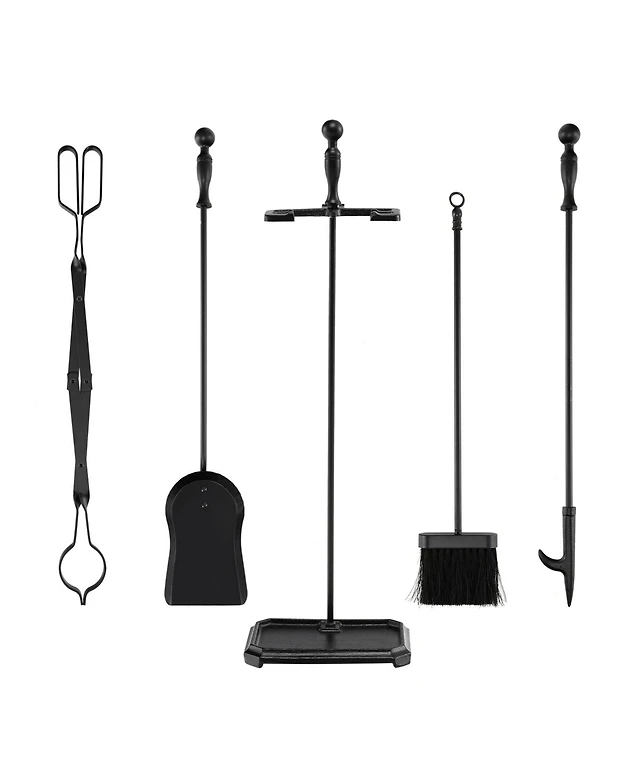 Sugift 5-Piece Fireplace Tool Set with Tong Brush Shovel Poker Stand