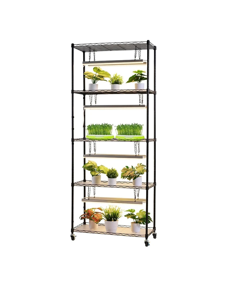 Bring a brighter growing setup indoors with this 5-tier plant stand, designed to nurture seedlings, herbs, blooms, and leafy favorites in one vertical footprint. Full-spectrum lighting, adjustable shelves, and smooth-rolling casters make it easy to create a flexible display that supports healthy growth without relying on window light alone.