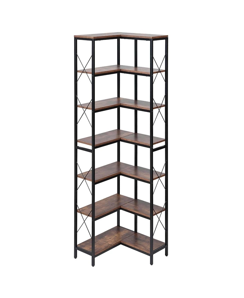 Sugift 7-Tier Corner Bookshelf, 79" Tall, Metal Frame and Wooden Shelves, Industrial