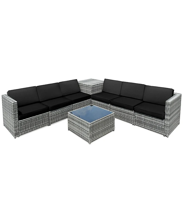 Sugift 8 Piece Wicker Sofa Rattan Dinning Set Patio Furniture with Storage Table-Black
