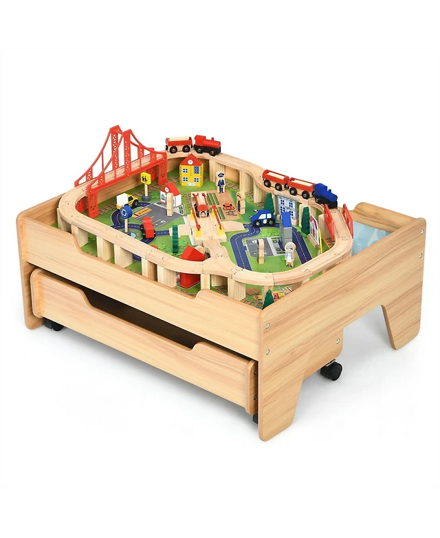 Sugift Children's Wooden Railway Set Table with 100 Pieces Storage Drawers