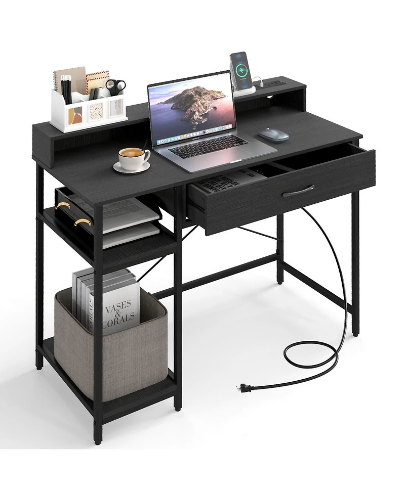 Sugift Computer Desk with Power Outlets Hutch Drawer and Open Shelves