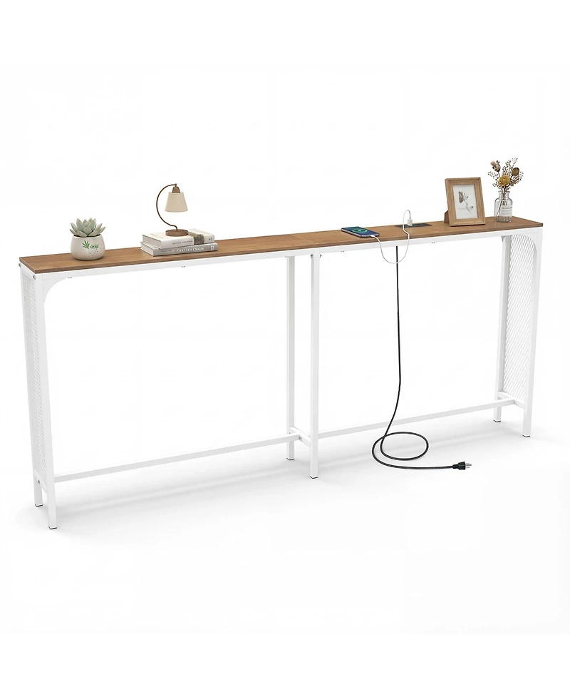 Enhance your space with this versatile console table, featuring a reversible charging station with 2 Ac outlets, a Usb port, and a type-c port. Its sleek, extra-long design fits perfectly behind sofas or in narrow hallways. Crafted from sturdy metal, it includes crossbars and anti-tipping kits for stability, making it ideal for any room.