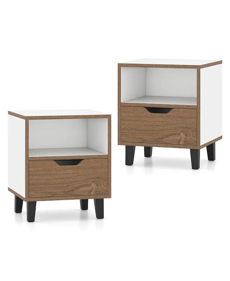 Sugift Nightstand Set of 2 with Drawer and Open Storage Shelf for Bedroom