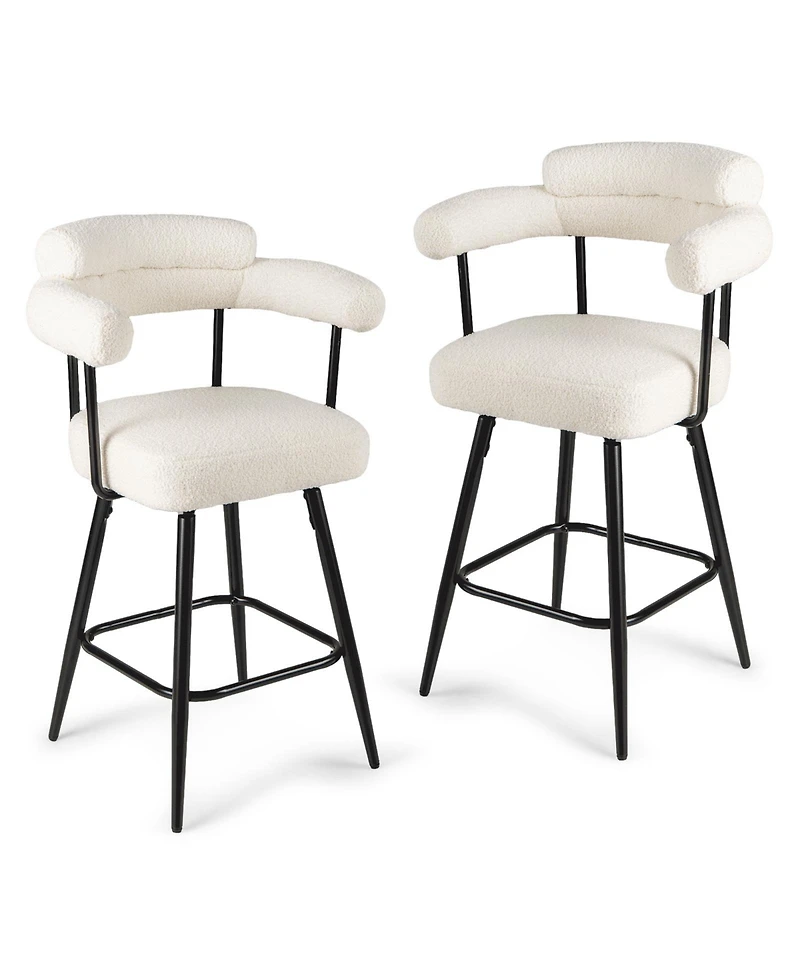 Elevate your seating experience with these stylish bar stools, wrapped in plush boucle fabric and filled with high-density sponge for ultimate comfort. Featuring a 360-degree swivel, sturdy metal frame, and ergonomic design, they blend functionality with elegance, making them a perfect addition to any kitchen or bar area.