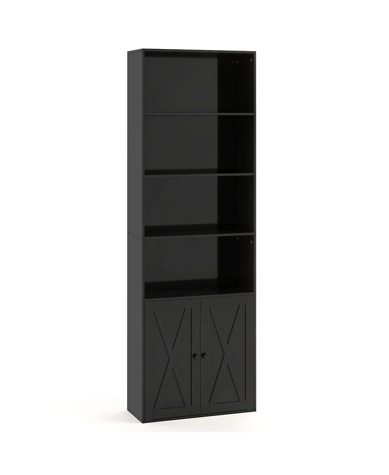 Sugift Tall Freestanding Bookshelf with Cabinet and Open Shelves