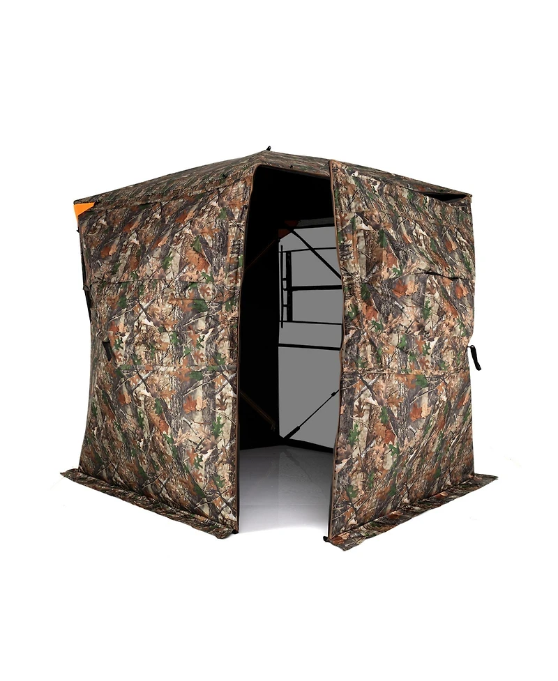 Experience the ultimate in hunting concealment with this innovative blind. Featuring a one-way see-through design, ultra-quiet windows, and a realistic camouflage pattern, it ensures stealth and comfort. Weather-resistant materials and a pop-up design offer durability and ease of use, making it perfect for solo or group hunting adventures.