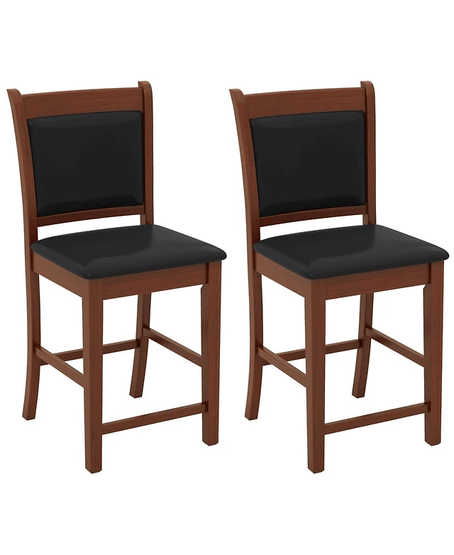 Sugift Upholstered Counter Stool Set of 2 with Solid Rubber Wood Frame-Brown