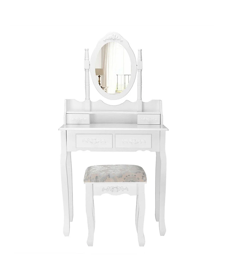 Sugift Vanity Table Set with Oval Mirror and 4 DrawersSugift Vanity Table Set with Oval Mirror and 4 DrawersSugift Vanity Table Set with Oval Mirror and 4 DrawersSugift Vanity Table Set with Oval Mirror and 4 DrawersSugift Vanity Table Set with Oval Mirror and 4 DrawersSugift Vanity Table Set with Oval Mirror and 4 Drawers