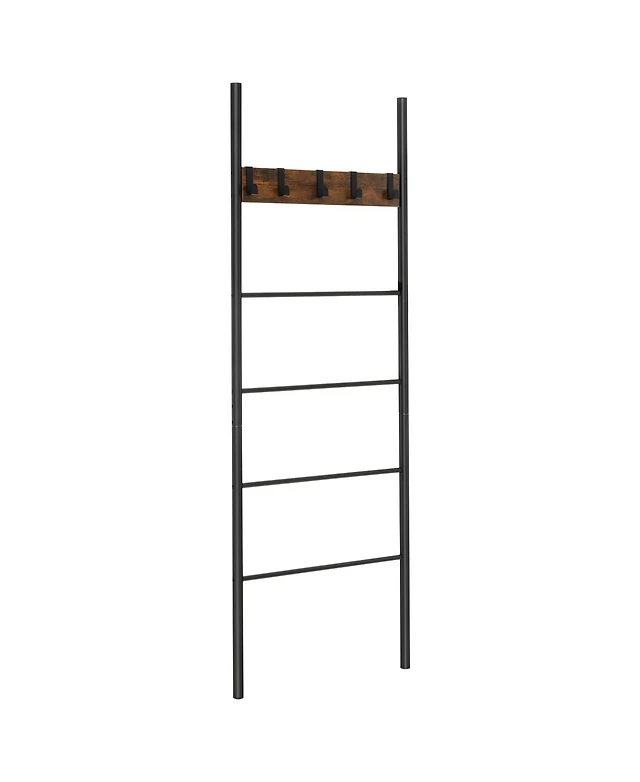 Sugift Wall-Leaning Decorative Blanket Holder with 5 Removable Hooks