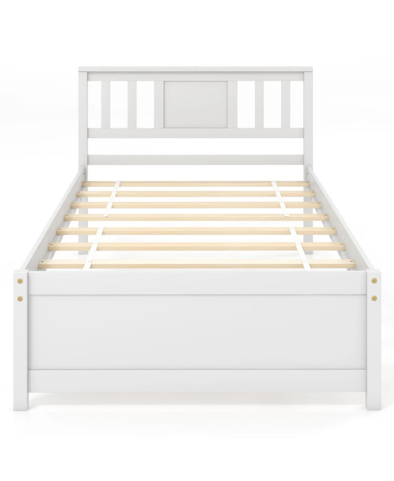 Sugift Wooden Platform Bed with Headboard and Wood Slat Support